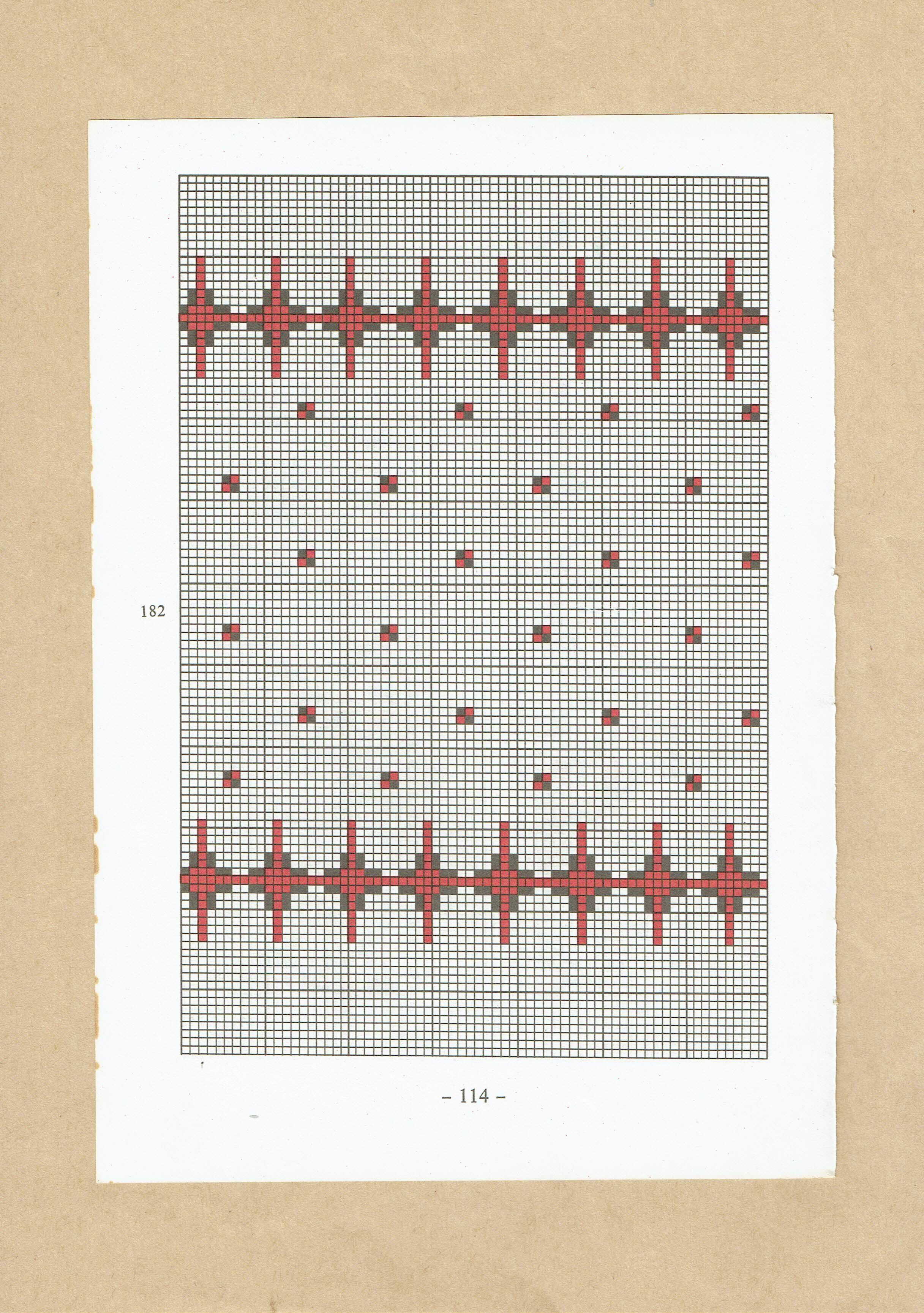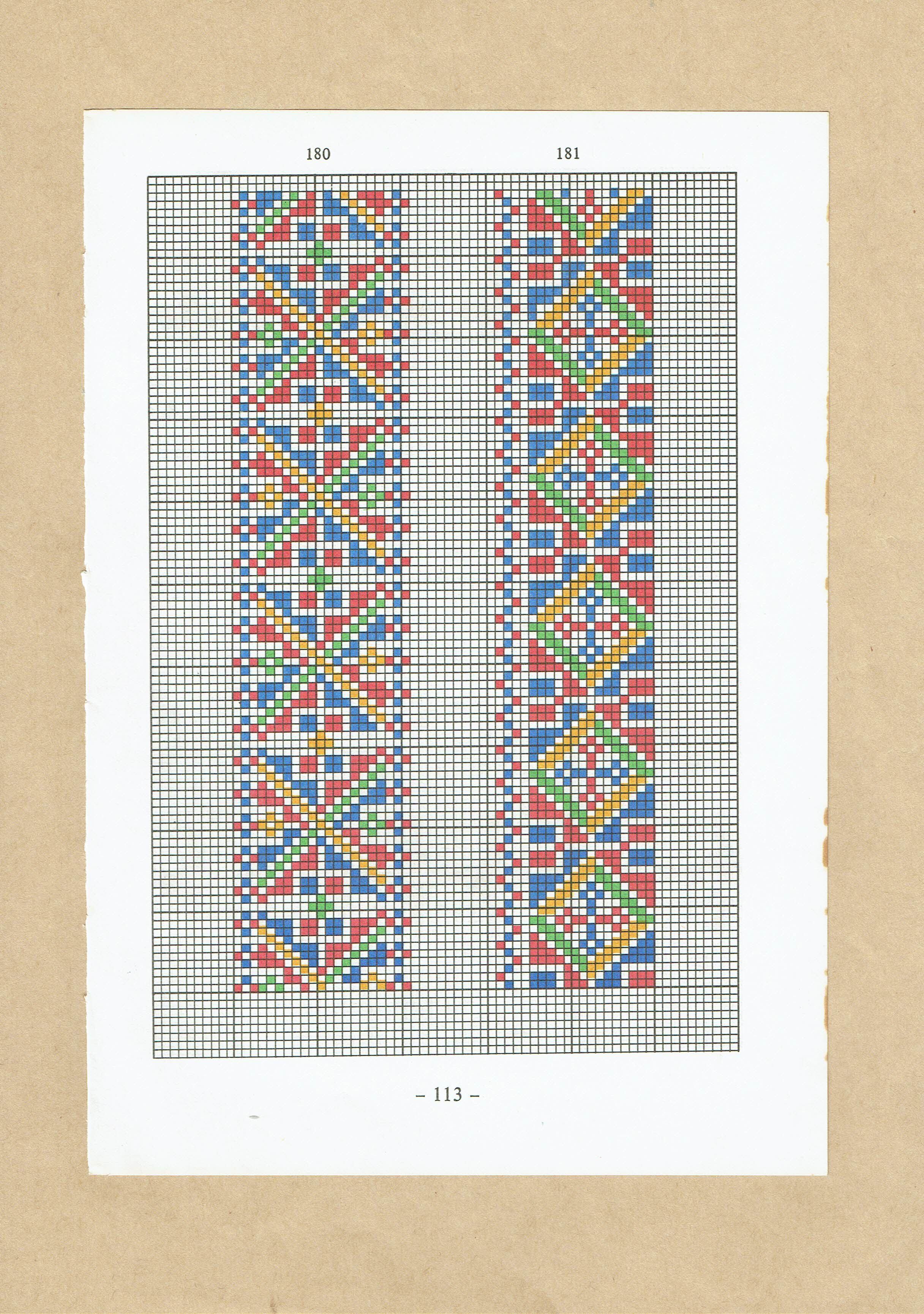 ハンガリーの古い刺繍図案の本の1ページです。表紙や一部ページがボロボロのため分解しました。両面印刷になっていますので、2パターンの図案が見れます。およそ1970年代のものです。